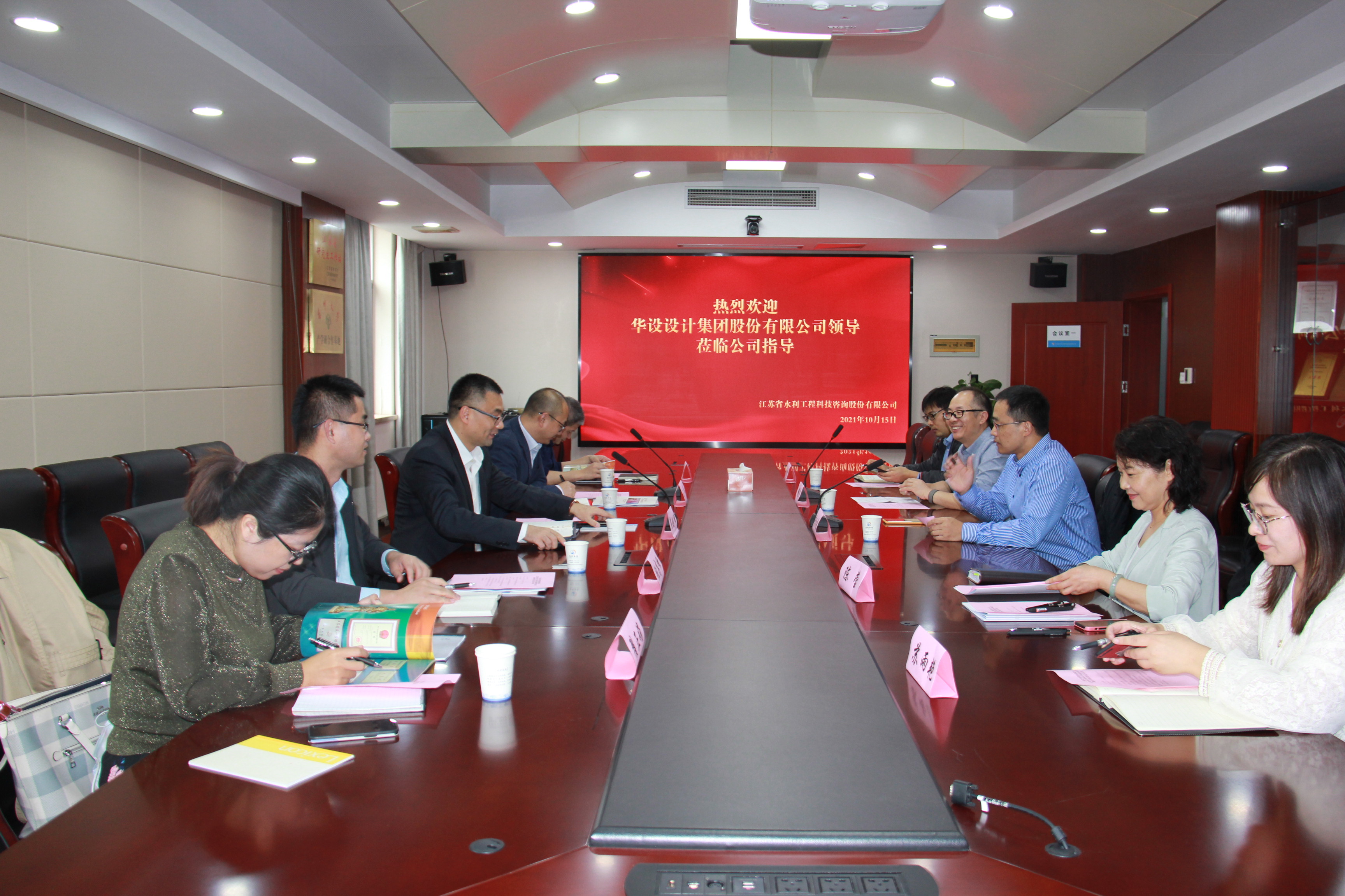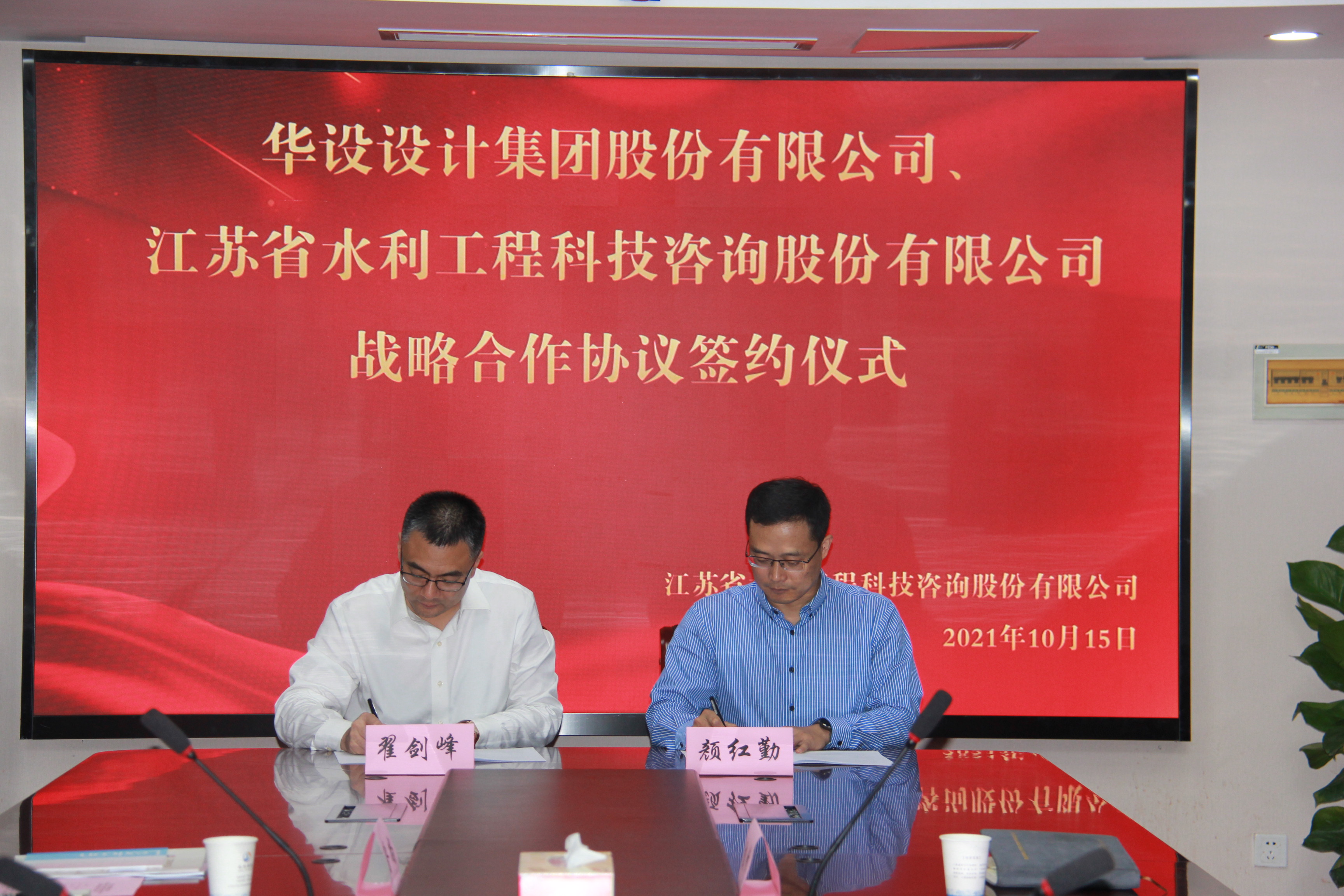 2021年10月15日下午13點30分,我公司與華設(shè)設(shè)計集團戰(zhàn)略合作簽約儀式在5樓會議室順利舉行。公司董事長顏紅勤和華設(shè)設(shè)計集團副總裁翟劍峰分別代表雙方在戰(zhàn)略合作協(xié)議上簽字。華設(shè)設(shè)計集團水運水利設(shè)計研究院王偉、張高峰、水利規(guī)劃所齊魯尚、翟正娟,我公司副總經(jīng)理翟高勇、綜合部陳瑩、規(guī)劃部甄峰、發(fā)展經(jīng)營部蘇雨艷等相關(guān)人員見證了簽約儀式。