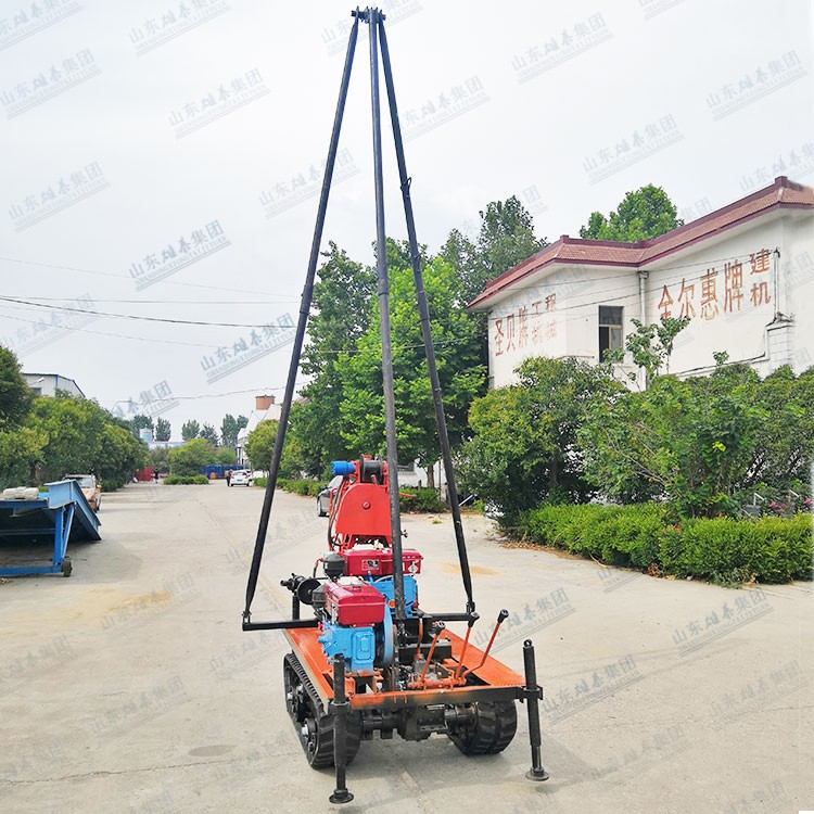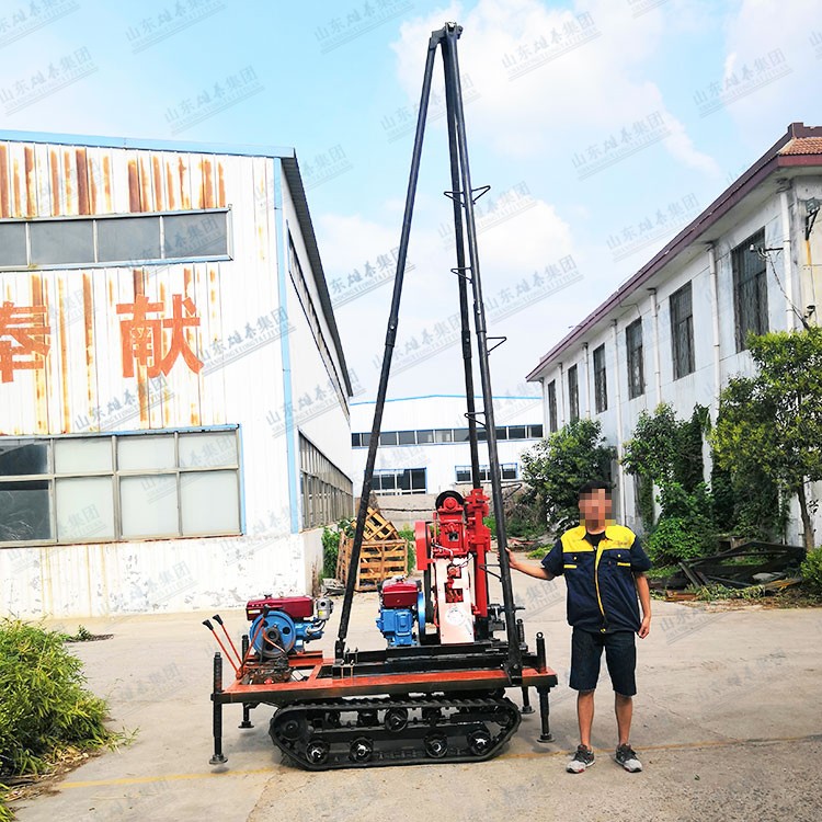我廠生產的BZ-50SL型鉆機,是在50系列鉆機的基礎上升級改造的,解決了傳統(tǒng)小型液壓鉆機鉆桿短,鉆進時需要反復提鉆下鉆的作業(yè)模式,該機型新增了履帶底盤,減輕了用戶的轉場負擔,提高了作業(yè)效率,鉆桿取芯鉆具等放在底盤上,發(fā)動機器就可以轉場了,同時增加了移機功能,鉆桿長度達到2米,鉆塔高度4.5米,精簡了作業(yè)流程,換桿不需要拆卸牛頭,提升了鉆進速度。